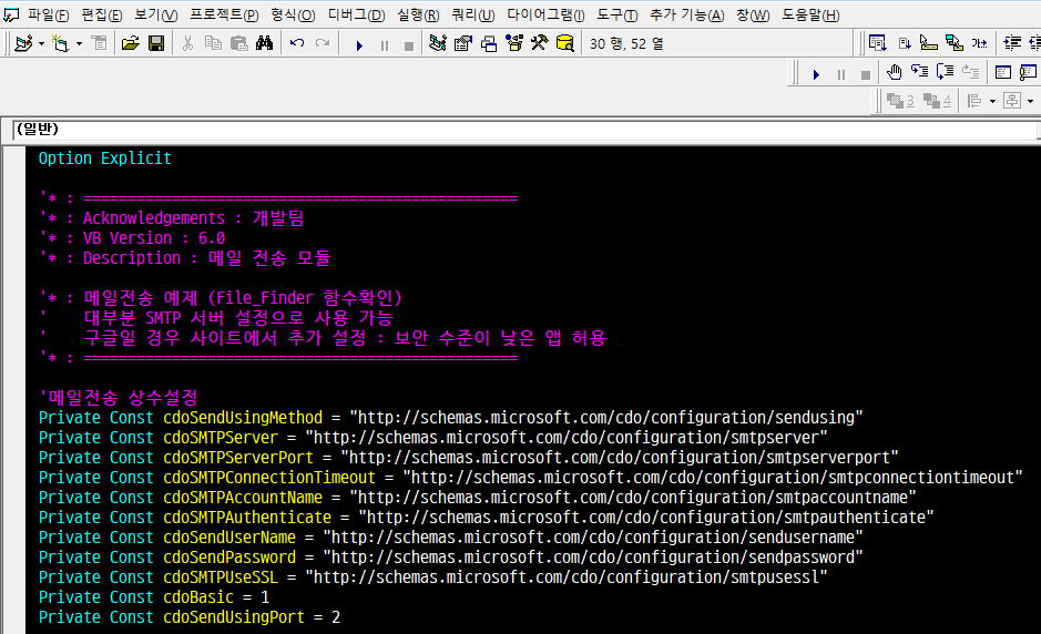 Visual Basic 6 코드 입력창은 현시대의 다른 개발 환경에 비해 굉장히 옛 느낌이 듭니다.